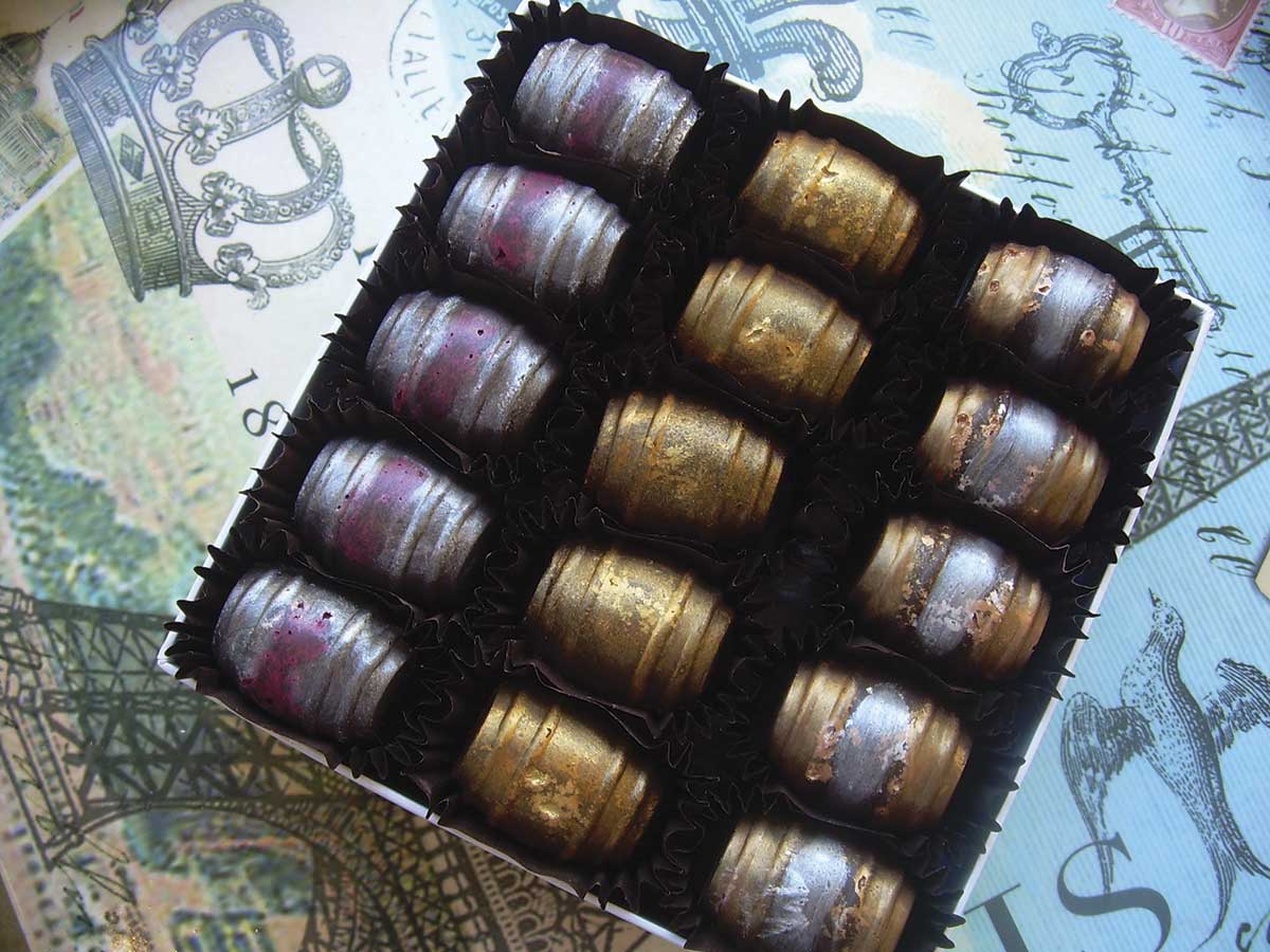 Peterson’s personal favorite is the ganache bonbon. These gained popularity as the simple truffle—made from chocolate and cream—not the misleading “creams,” which often contain no cream at all. She explains: “Ganache bonbons differ from truffles because they have a chocolate shell, making them more elegant and adding another layer of flavor and texture.”